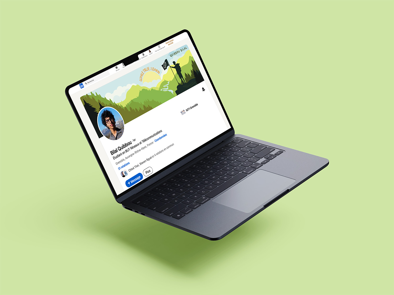 Suite à la réalisation de ma première bannière LinkedIn, j'ai eu l'opportunité de créer une nouvelle bannière sur demande pour Bilal Quibbou. Cette expérience m'a permis d'apprendre à mener des projets et à répondre aux besoins des clients. J'ai également pu améliorer ma maîtrise de la suite Adobe, notamment d'Illustrator.